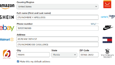 Registrar como dirección de envío su nuevo casillero internacional en Miami.